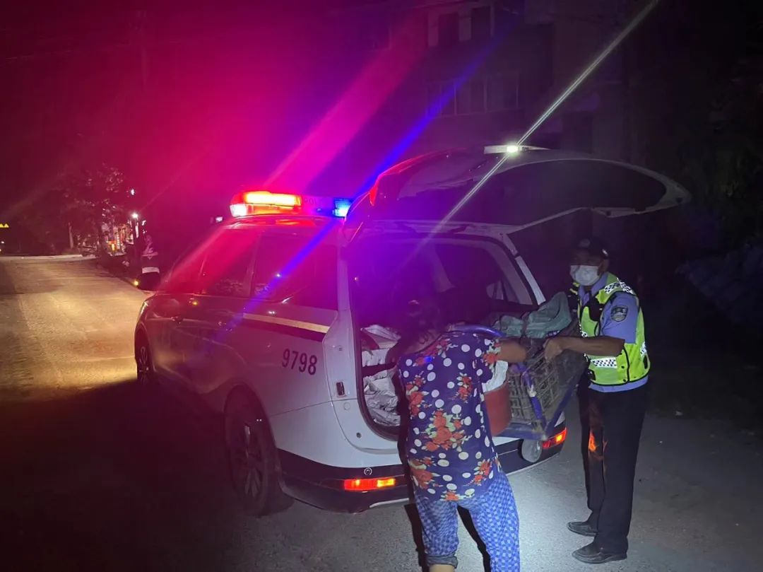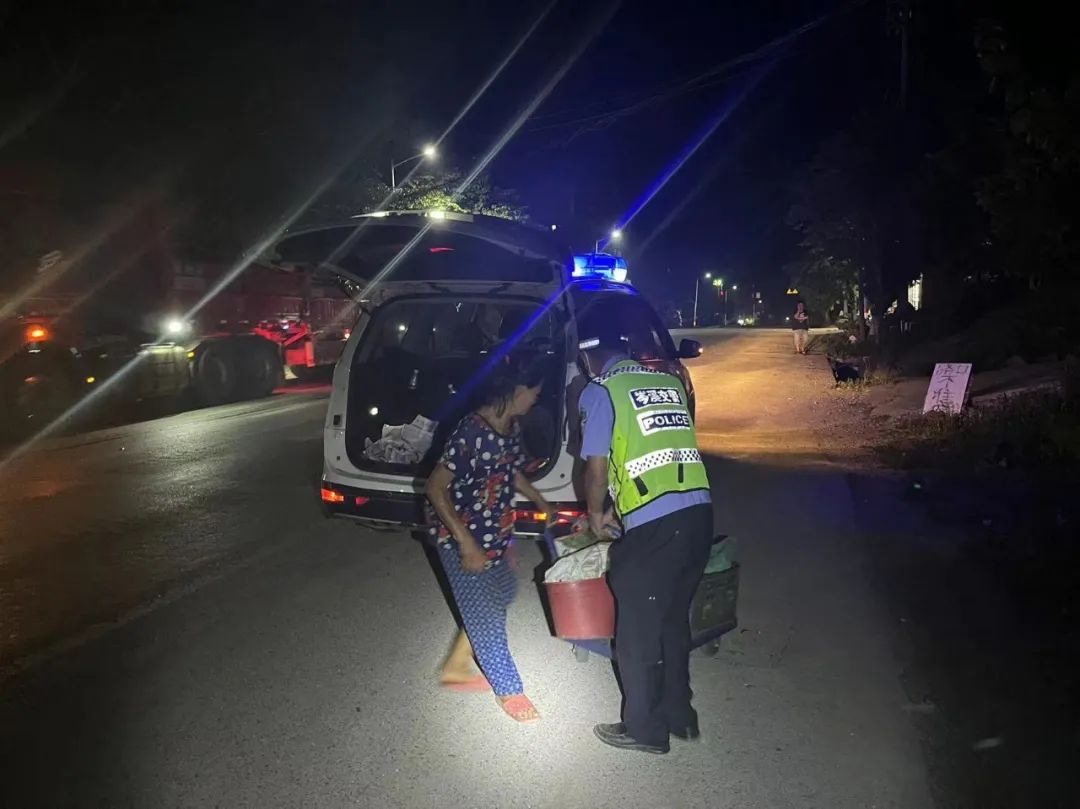 民警見(jiàn)離女子的村落還有好幾公里路程,走路的話需要一個(gè)多小時(shí),而且周邊環(huán)境黑暗,路上車來(lái)車往,很不安全。于是,民警便將平板手推車抬上警車,叫女子坐上警車,將其送回家中。