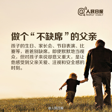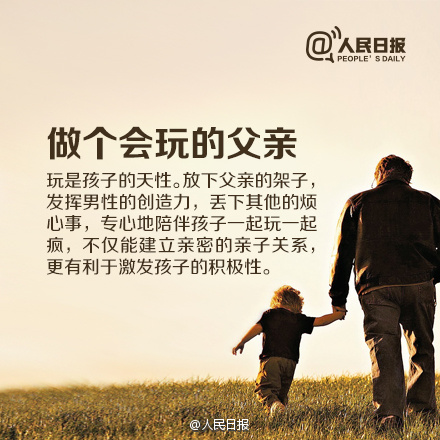 來源:媽媽抱團(tuán)(ID: mmbaotuan)“我做了父親,做了人家的先生,并不代表我就可以很自然地得到他們的尊敬。你每天還是要來賺他們的尊敬,你要達(dá)到某一個(gè)標(biāo)準(zhǔn),這個(gè)是讓我不懈怠的一個(gè)原因?!?/span>并不是生理上做了父親,孩子就天然會(huì)親你愛你敬你。人民日報(bào)曾給出了10個(gè)建議,值得分享給所有爸爸,收藏起來反復(fù)閱讀。