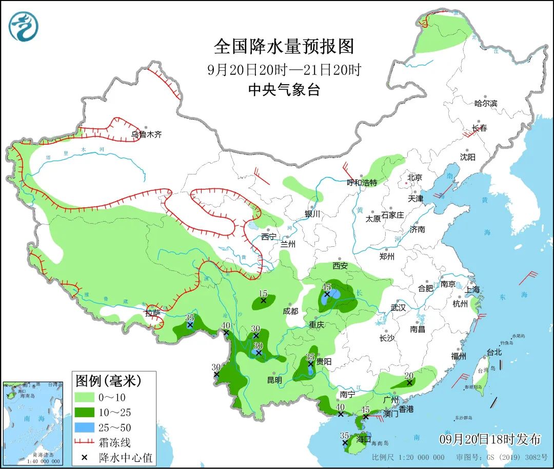 中央氣象臺(tái)預(yù)計(jì),9月20日20時(shí)至21日20時(shí),西藏東南部、四川東北部和南部、重慶中北部、貴州西南部、云南北部和西部、廣西南部、廣東東部和西南部、海南島北部和西部等地部分地區(qū)有中雨,局地大雨。