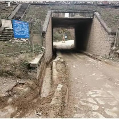 益湛鐵路于2008年度建成運行,貫穿糯垌鎮(zhèn)7個村、1個社區(qū),經(jīng)過隧道6個,交通涵洞10個。其中三興村鐵路交通涵洞由于建成年代較長,周邊山體泥水沖刷堆積,三興工業(yè)園區(qū)貨車出入頻繁等原因,導(dǎo)致涵洞內(nèi)道路損壞較為嚴重,排水溝嚴重堵塞,基本喪失排水功能,每逢雨水天,涵洞內(nèi)都有較深的積水,嚴重影響周邊群眾正常出行。
