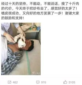 然而,就在這短短43秒間,他卻被爆燃的氣浪灼傷,全身30%皮膚深二度燒傷,前后經(jīng)歷手術(shù)20余次。