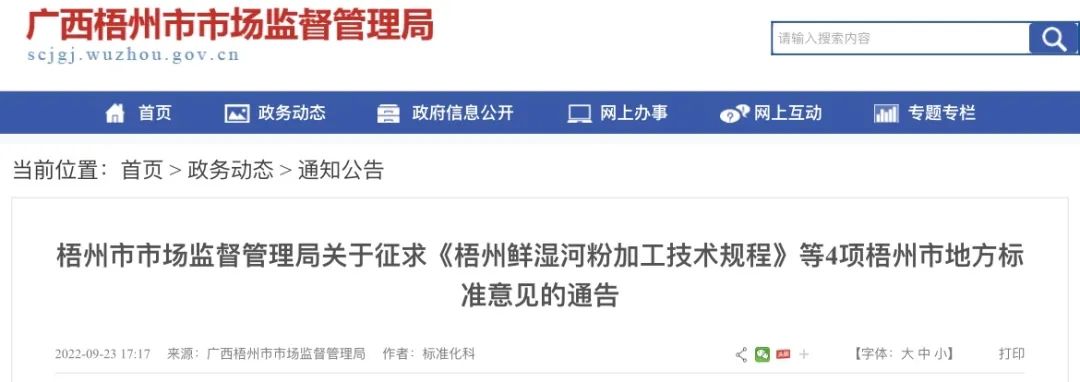 為做大做強梧州河粉產(chǎn)業(yè),為產(chǎn)業(yè)發(fā)展提供政策支持,日前梧州市市場監(jiān)督管理局發(fā)布通告稱,《梧州鮮濕河粉加工技術(shù)規(guī)程》《梧州干河粉加工技術(shù)規(guī)程》《梧州上湯河粉制作技術(shù)規(guī)程》《梧州河粉店建設(shè)與服務(wù)規(guī)范》共四項梧州市地方標準征求意見稿編寫工作已完成,現(xiàn)向社會公眾公開征求意見。