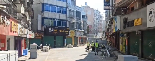 目前,商貿(mào)城后街已開始進行施工,各商鋪均已暫時關門停業(yè)。