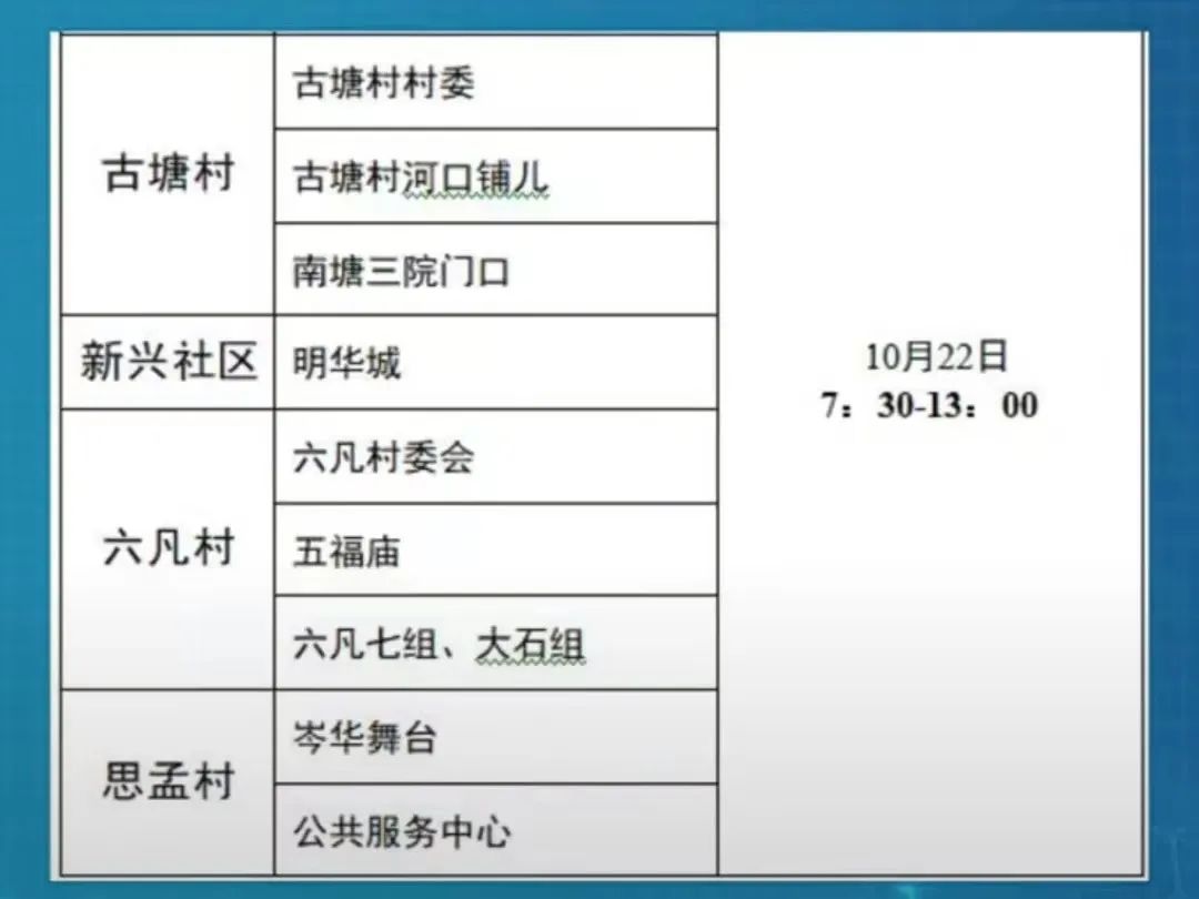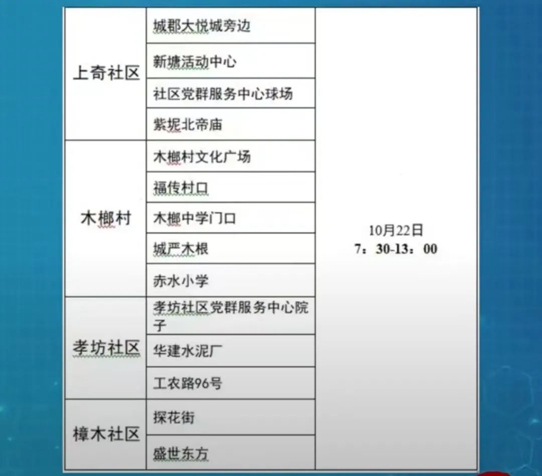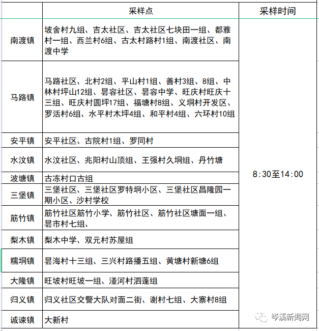 各鎮(zhèn)村核酸檢測(cè)采樣點(diǎn)名單