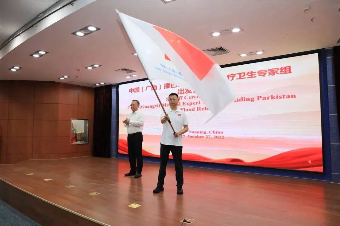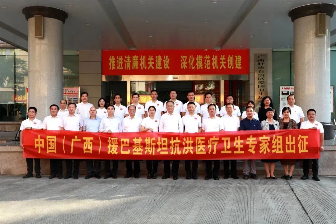 10月27日,由中國政府派遣的中國(廣西)援巴基斯坦抗洪醫(yī)療衛(wèi)生專家組出發(fā)儀式在南寧舉行,國家國際發(fā)展合作署副署長鄧波清、自治區(qū)副主席黃俊華、巴基斯坦駐華使館公使法入克等為專家組送行。