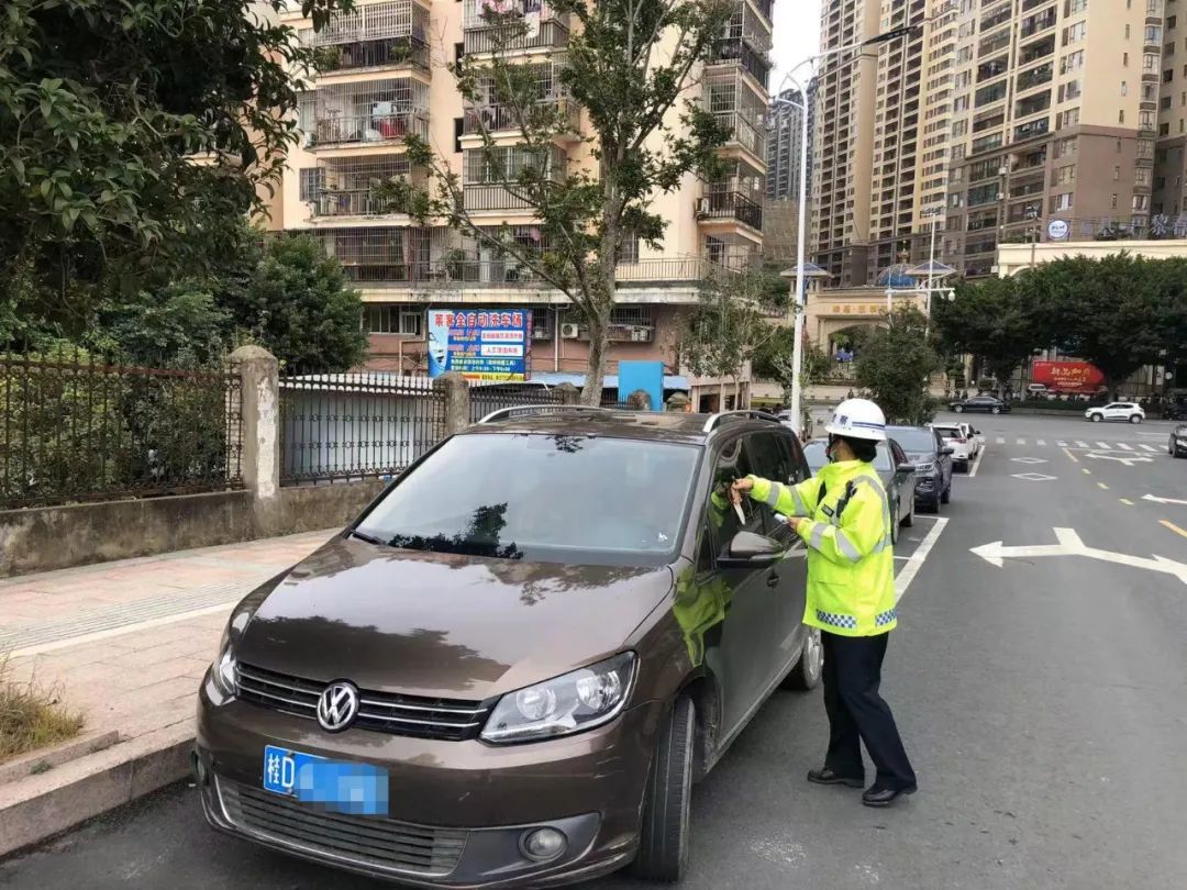在整治行動(dòng)中,交警強(qiáng)化交通安全法規(guī)宣傳,對(duì)無法聯(lián)系到車主的違停車輛,張貼違法停車告知書。