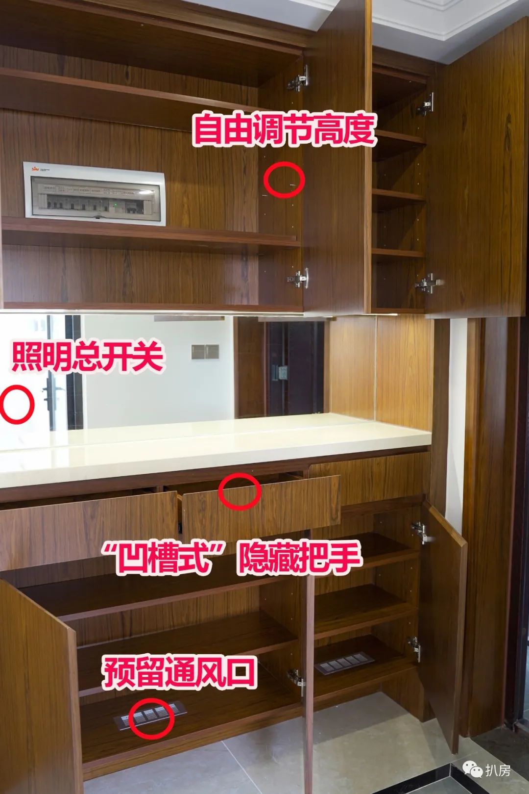 ▲玄關(guān)鞋柜、廚房推拉門“凹槽式”隱藏把手設(shè)計(jì),更為美觀實(shí)用。