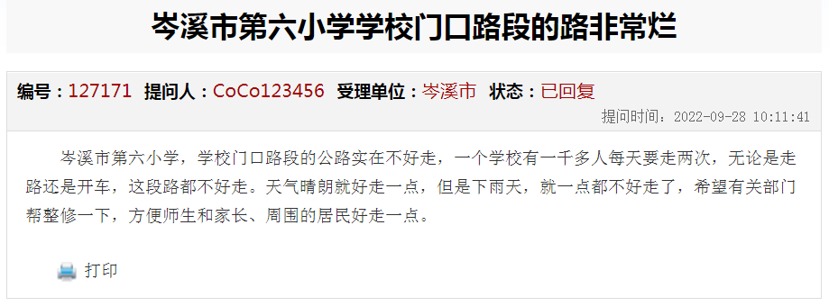 岑溪市第六小學(xué),學(xué)校門(mén)口路段的公路實(shí)在不好走,一個(gè)學(xué)校有一千多人每天要走兩次,無(wú)論是走路還是開(kāi)車(chē),這段路都不好走。天氣晴朗就好走一點(diǎn),但是下雨天,就一點(diǎn)都不好走了,希望有關(guān)部門(mén)幫整修一下,方便師生和家長(zhǎng)、周?chē)木用窈米咭稽c(diǎn)。