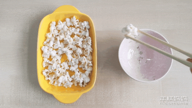 等娃能熟練用筷子吃飯了,還可以嘗試夾爆米花、夾豆子之類的游戲,進(jìn)一步提高手部控制力。