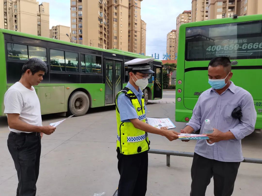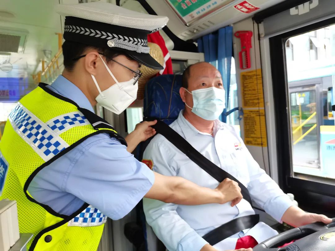 宣傳民警對(duì)公交車駕駛員進(jìn)行宣教,對(duì)車內(nèi)安全帶、消防錘、滅火器等設(shè)備進(jìn)行檢查,并派發(fā)了“一盔一帶”交通安全宣傳單,警示駕駛員佩戴安全帶、杜絕交通違法行為,保障自己和群眾乘車安全。