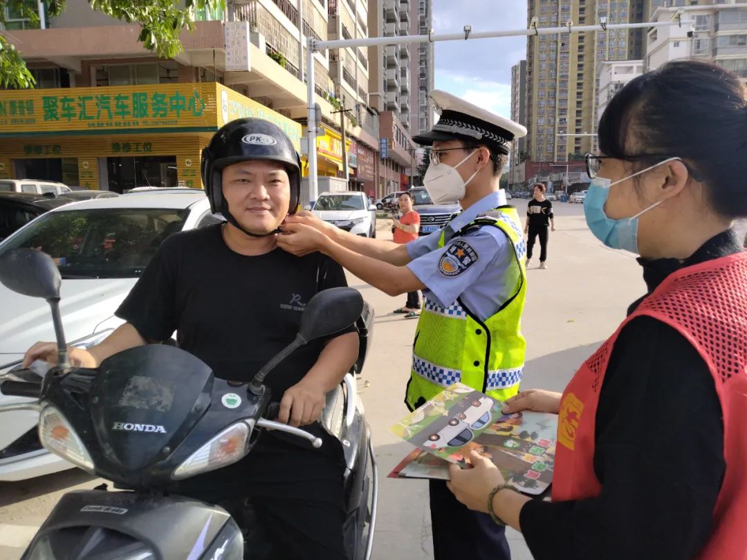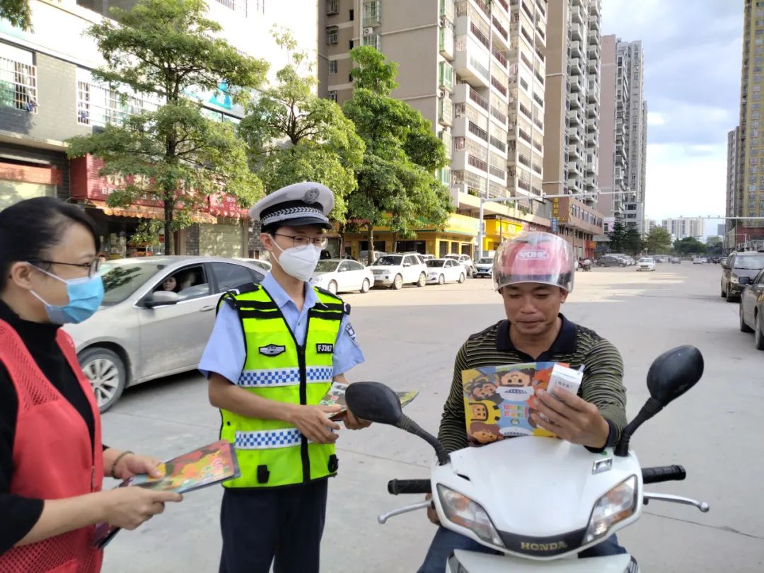 活動(dòng)中,民警、輔警通過向過往的社區(qū)居民發(fā)放交通安全宣傳資料、面對(duì)面講解的形式,向廣大社區(qū)居民宣傳和普及“一盔一帶”、交通安全問題中的“交通陋習(xí)”等交通法律法規(guī)知識(shí),詳細(xì)講解了無牌無證、酒后駕駛、騎乘摩托車、電動(dòng)車不戴安全頭盔等交通違法行為帶來的危害和后果,以及行人如何行走更安全。
