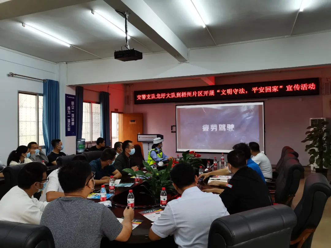 11月29日,梧州市公安局交警支隊(duì)龍圩大隊(duì)繼續(xù)深入北投集團(tuán)梧州片區(qū)開展122“文明守法,平安回家”宣傳活動(dòng)。