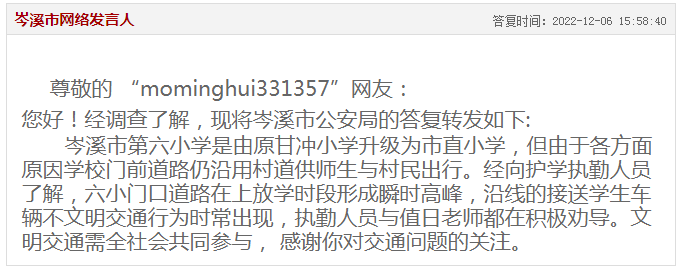 學(xué)校門(mén)前路段,交通狀況大多擁擠,上學(xué)錯(cuò)峰還好;一到放學(xué)時(shí)間,眾多家長(zhǎng)集中在同一時(shí)間接送學(xué)生,如果再碰上傍晚下班高峰期,其他車(chē)輛穿行其中,擁堵可想而知。為此, 上月有網(wǎng)友問(wèn)政:岑溪六小路口狹小路段兩邊??啃≤?chē),嚴(yán)重影響學(xué)生放學(xué)出行,希望相關(guān)部門(mén)及時(shí)處理。