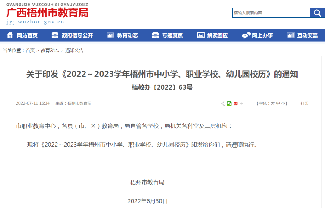 《2022至2023學(xué)年梧州市中小學(xué)、職業(yè)學(xué)校、幼兒園校歷》