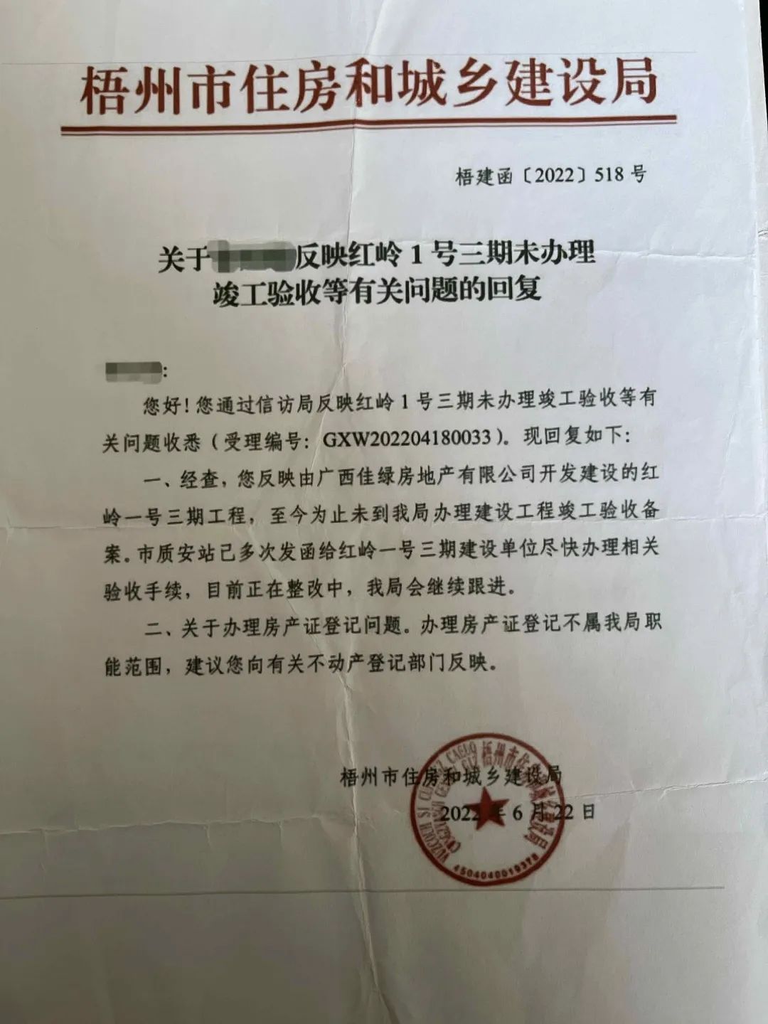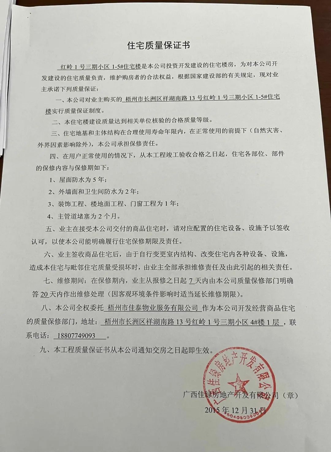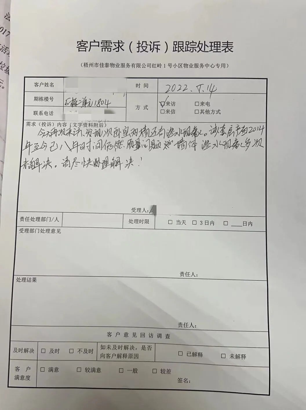 對此,小區(qū)物管方梧州市佳泰物業(yè)服務有限公司的副經(jīng)理余女士表示,一直以來,物管方積極做好業(yè)主與開發(fā)商之間的溝通協(xié)調工作,傾聽收集業(yè)主反映的問題并反饋給開發(fā)商,協(xié)助開發(fā)商解決小區(qū)的問題。