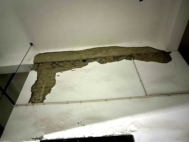 樓道間墻面剝離,露出水泥面。鐘慧 攝