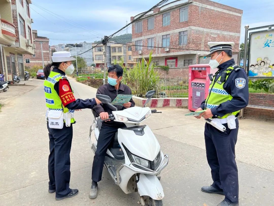 針對轄區(qū)農(nóng)村交通參與者交通安全意識淡薄的實(shí)際,宣傳民警還通過粘貼“一盔一帶”交通安全宣傳海報、發(fā)放宣傳資料、贈送交警人物小掛件和安全頭盔,以及小喇叭設(shè)備循環(huán)播放交通出行語音提示等方式,引導(dǎo)村民摒棄交通陋習(xí),嚴(yán)格遵守交通安全法律法規(guī),自覺抵制交通違法。