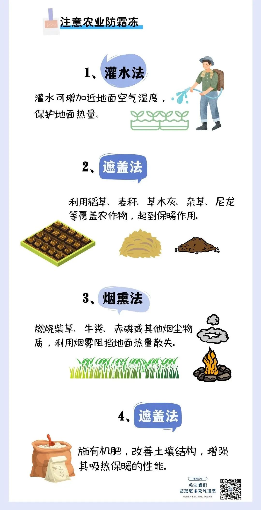 天氣寒冷,早間有霜凍或冰凍,注意做好農作物、果樹、家禽類的防寒保暖工作。