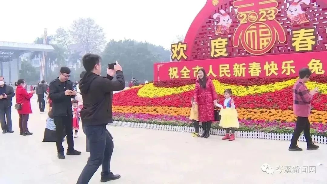臨近中午,市人民廣場人潮涌動(dòng),市民們攜老扶幼走上街頭“行大運(yùn)”,大型“兔年”主題賀新春主景造型在五顏六色的花卉相互映襯下,透出喜氣洋洋的“煙火氣”,將迎接兔年新春的儀式感和氛圍感拉滿。