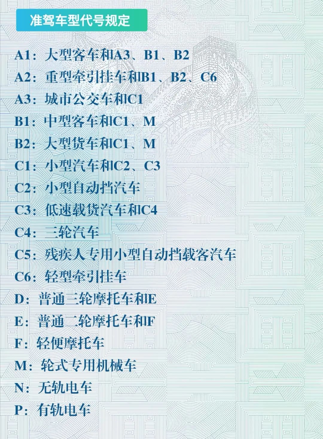駕駛證準駕車型及代號: