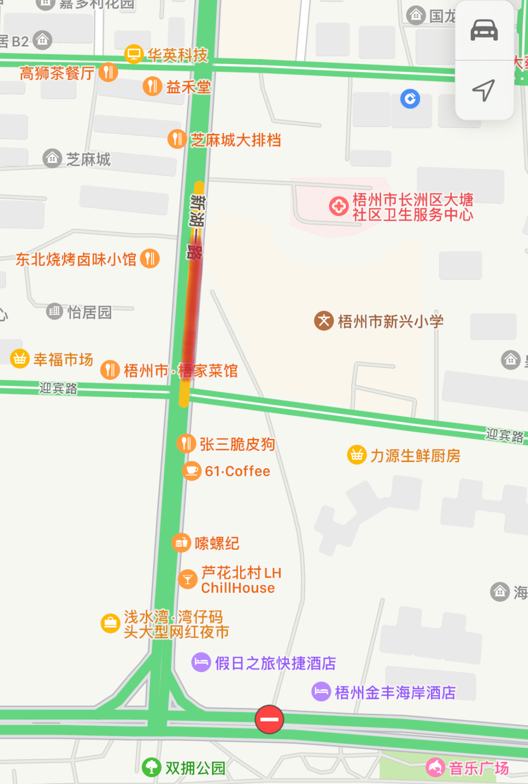 紅線處為新湖一路下陷路段示意圖