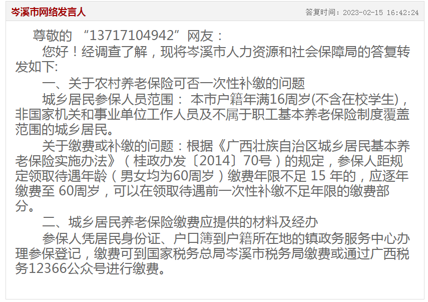 請(qǐng)問岑溪社會(huì)保障局,岑溪農(nóng)民可以一次補(bǔ)繳養(yǎng)老保險(xiǎn)嗎?如能女性要什么條件才能補(bǔ)繳。補(bǔ)繳時(shí)要什么資料,在什么部門申請(qǐng)補(bǔ)繳。