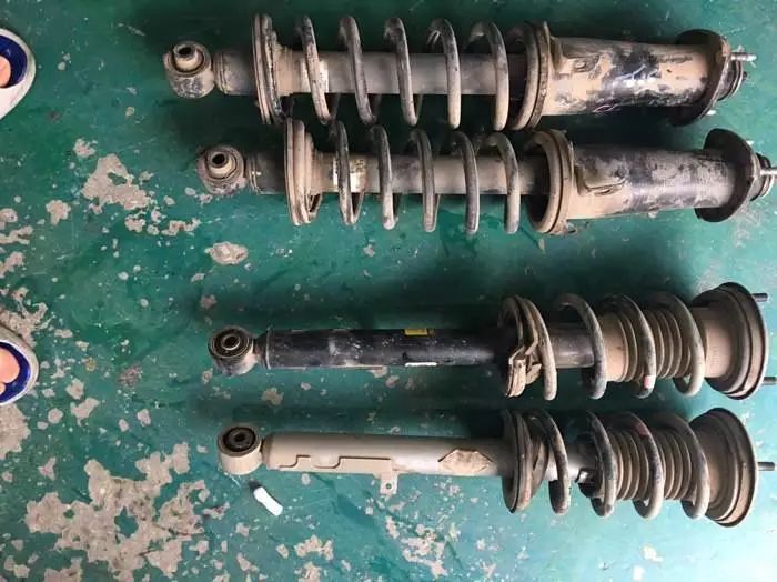 原因其實(shí)很簡單,就是因?yàn)闇p震器中已經(jīng)沒有足夠的油液來滿足它的工作條件,說白了油都漏光了,只能在那里硬磨,無法通過油液的擠壓來達(dá)到緩慢拉伸的效果。只有彈簧在做工,帶來的感受就是“蹦”!
