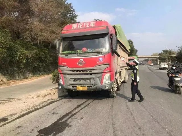 龍圩大隊(duì)在207國道、蒼海大道設(shè)卡,對大貨車超載超速及灑漏交通違法行為進(jìn)行專項(xiàng)整治。