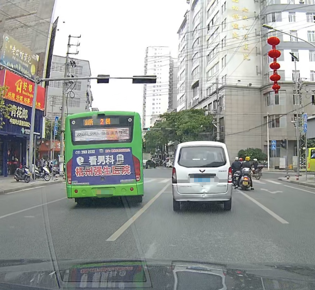 據(jù)網(wǎng)友反映:岑溪公交車紅綠燈路口違法壓實(shí)線逆行。