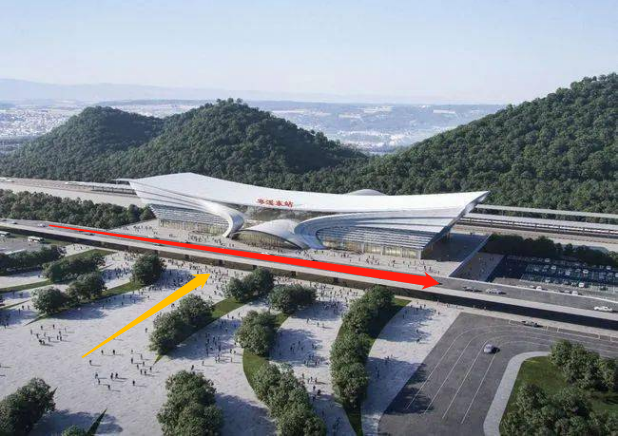 ▲岑溪東站網(wǎng)傳效果圖(紅線標示為站前大道)