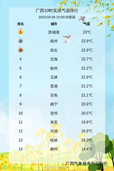 氣象君表示,今明兩天梧州仍受冷空氣影響,預(yù)計(jì)今周(3月13日至17日),梧州以多云天氣為主,降雨偏少,12日至13日受冷空氣影響,各地日平均氣溫下降4℃~6℃。