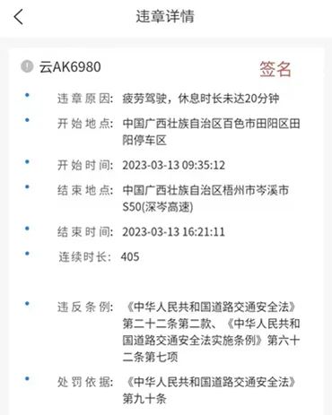 2023年3月13日9時35分,李某成駕駛云AK6980重型箱式貨車在百色市田陽停車區(qū)出發(fā),16時24分到達(dá)深岑高速公路346KM+700M(岑溪市路段),因疲勞駕駛追尾前方同方向同車道豫U***2掛重型低平板半掛車,造成兩車不同程度損壞的交通事故。