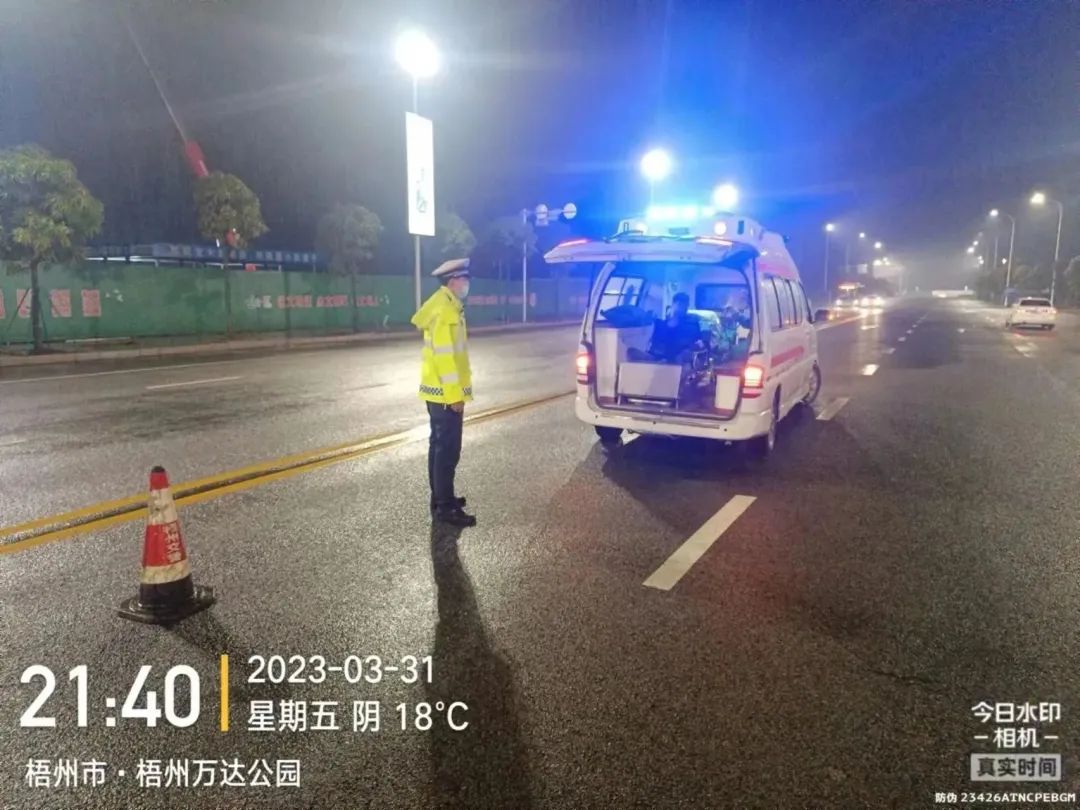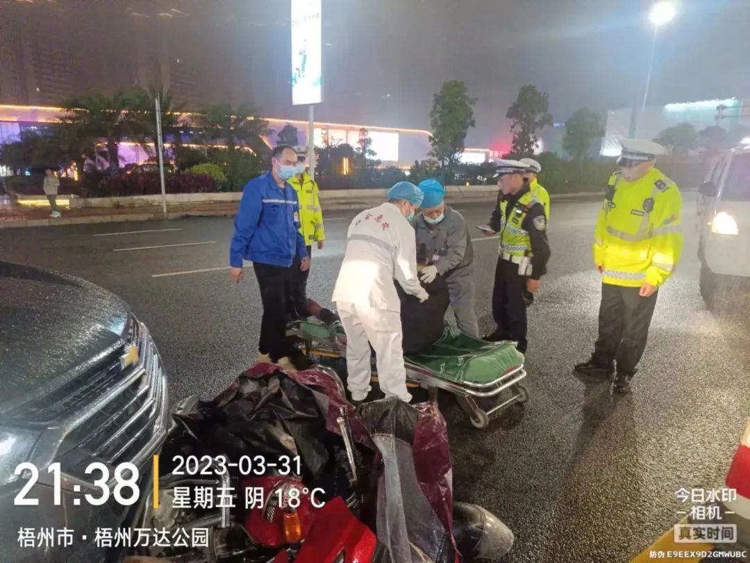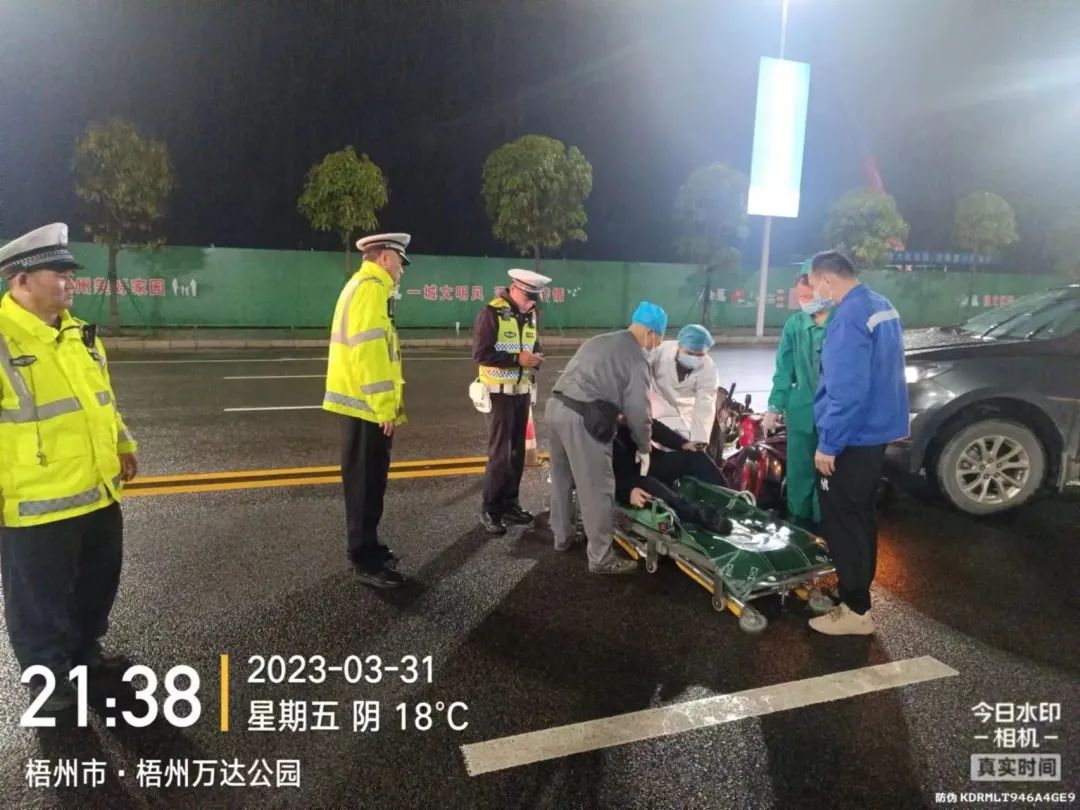 3月31日晚上,梧州市公安局交警支隊萬秀大隊執(zhí)勤警力巡邏至萬達(dá)廣場附近路段時,在萬達(dá)廣場三號門對出路段發(fā)現(xiàn)一起摩托車和小車碰撞事故,摩托車車主手腳受傷需送往醫(yī)院就醫(yī),萬秀大隊執(zhí)勤警員做好現(xiàn)場防護(hù)措施后,為車主撥打了120急救電話,并聯(lián)系事故大隊來現(xiàn)場處理,執(zhí)勤人員及時救助事故傷者,受到群眾一致稱贊。