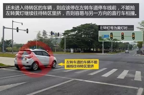 其實(shí),對(duì)于什么時(shí)候能進(jìn)入待轉(zhuǎn)區(qū),你只要記住“直行綠燈亮,可進(jìn)入左轉(zhuǎn)彎待轉(zhuǎn)區(qū)”就可以了。其他的,你按照平時(shí)的行車規(guī)則開(kāi)車就行了。