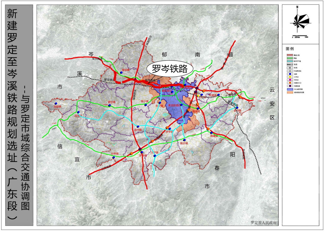 本線路自春羅鐵路羅定站引出后由東向西,經(jīng)羅定市的雙東街道、郁南縣的大灣鎮(zhèn)、羅定市的附城街道、榃濱鎮(zhèn)及岑溪市的大業(yè)鎮(zhèn)、歸義鎮(zhèn)到達(dá)岑溪市,接入益湛鐵路岑溪站,線路全長78.404km,其中廣東境內(nèi)37.580km。線路廣東段具體走向?yàn)椋鹤源毫_鐵路羅定站中心接出后,先后下穿龍華東路和規(guī)劃深南高鐵,于羅定市雙東水電站上游跨羅定江,在規(guī)劃深南高鐵與深岑高速之間向西前行,于深南高鐵羅定北站北側(cè)預(yù)留設(shè)站條件,出站后折向南下穿深南高鐵,跨國道324后折向西,沿G324國道南側(cè)行進(jìn),至金灘后沿榃濱河南岸溯流而上,至榃濱鎮(zhèn)南側(cè)設(shè)榃濱站,出站后沿鰲濱河展線,經(jīng)大灣、潮嶺至白屋寨設(shè)白屋寨站(預(yù)留),而后穿云開隧道(5690m)進(jìn)入廣西境內(nèi)。本項(xiàng)目廣東段正線長度37.580公里,共設(shè)置2個(gè)車站,分別為改建接軌站羅定區(qū)段站,新建榃濱會(huì)讓站。▲規(guī)劃選址圖(圖源:羅定至岑溪線選址論證報(bào)告)