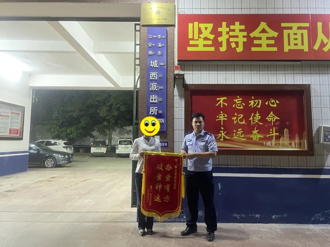 4月20日,事主拿著一面印有“辦案有方 破案神速”的錦旗送到岑溪市公安局城西派出所(合署)民警手中,對(duì)民警快速破案,及時(shí)挽回?fù)p失表示感謝。