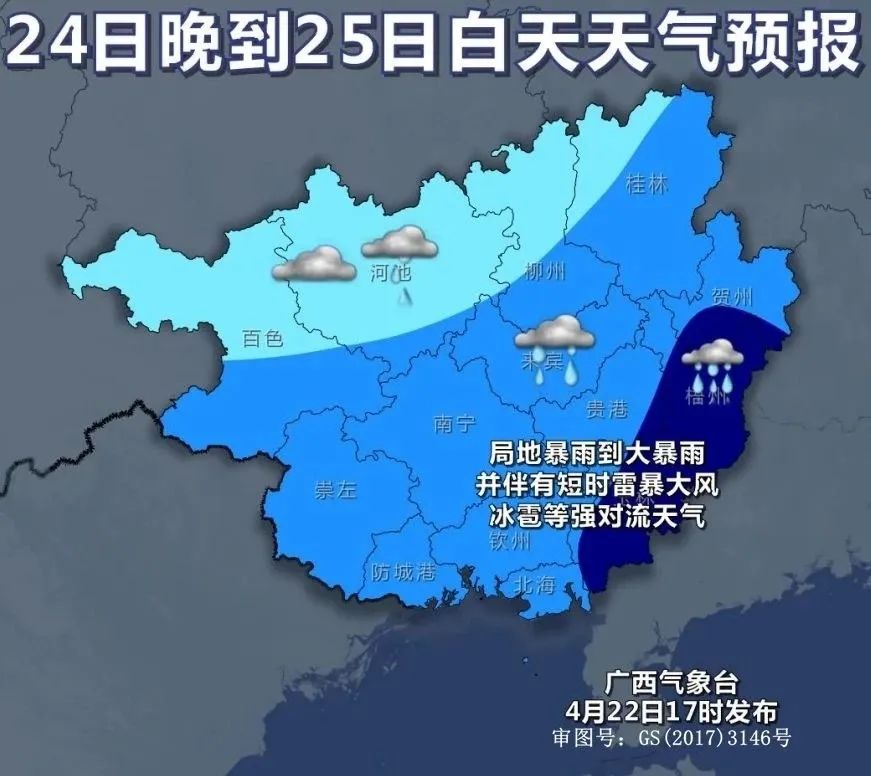 4月24日晚至25日白天天氣預(yù)報(bào) 圖片來(lái)源:廣西氣象臺(tái)