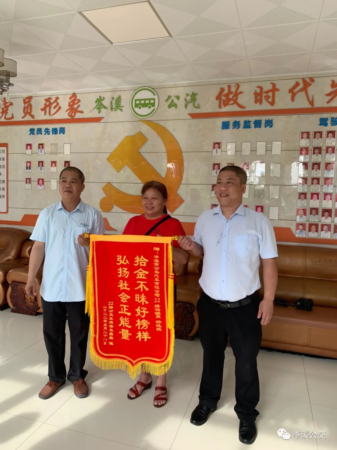 5月30日上午,乘客朱女士將一面繡著“拾金不昧好榜樣、弘揚(yáng)社會正能力”的錦旗送到岑溪市公共汽車有限公司,感謝22路公交車駕駛員楊遠(yuǎn)桂師傅拾金不昧的美好品德。