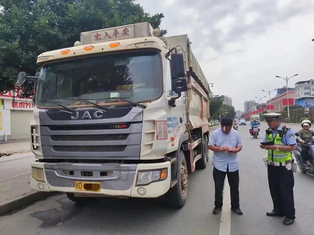 龍圩大隊(duì)在207國(guó)道、蒼海大道設(shè)卡,對(duì)大貨車超載超速及灑漏交通違法行為進(jìn)行專項(xiàng)整治。