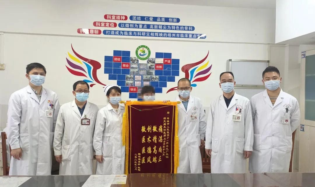 一名患者在我院行股骨頭罝換術(shù),術(shù)后切口疼痛難忍,我院麻醉科劉偉明主任知曉情況后馬上到病房隨訪患者,并調(diào)整了鎮(zhèn)痛藥物,幫助患者及時控制疼痛,減輕痛苦。3月17日,患者家屬向麻醉科送來一面錦旗,以表達(dá)誠摯的謝意。