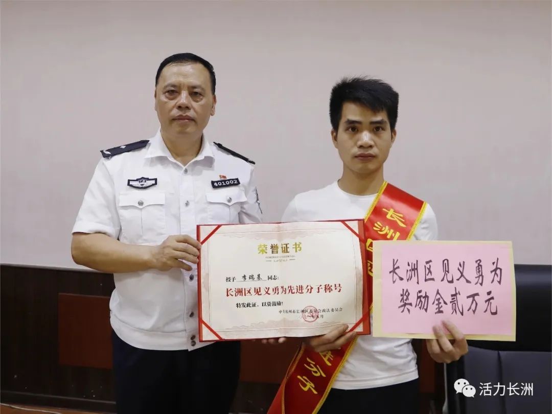 5月19日上午,梧州市長洲區(qū)召開見義勇為表揚獎勵大會,對冬日落水勇救兩名小孩的李瑞基進(jìn)行了表揚獎勵,授予長洲區(qū)見義勇為先進(jìn)分子稱號。