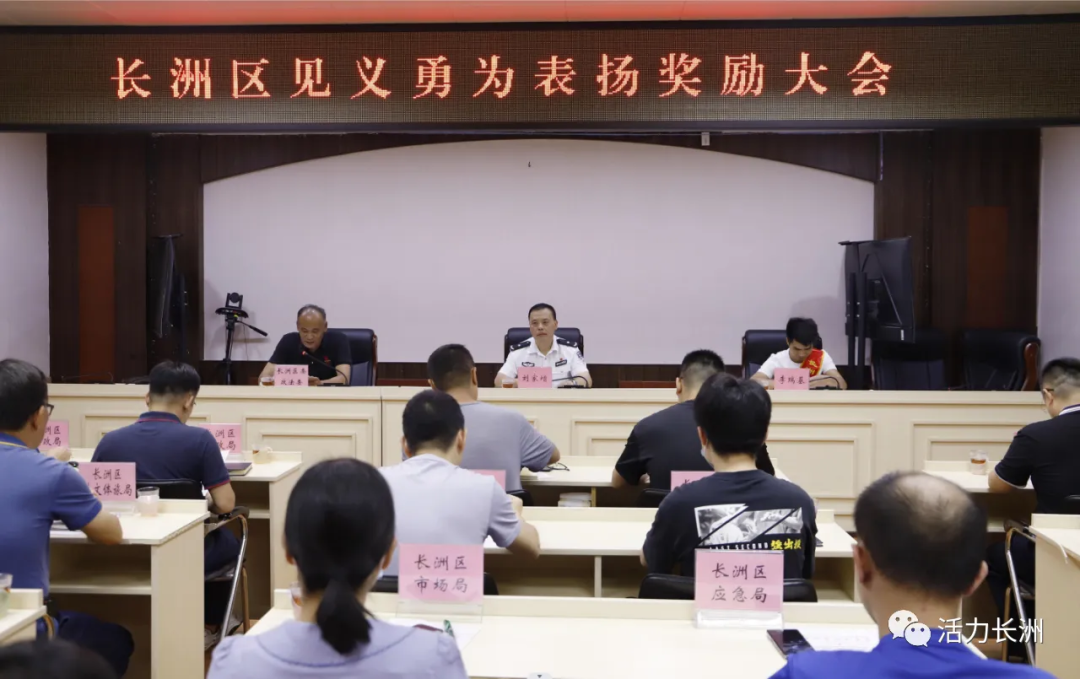 5月19日上午,長洲區(qū)召開見義勇為表揚獎勵大會。圖片來自中共梧州市長洲區(qū)委員會政法委員會