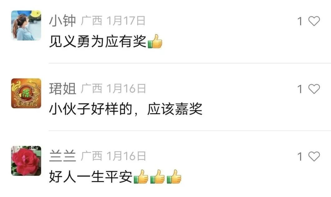 梧州救人小伙子李瑞基相關(guān)歷史報道的網(wǎng)友留言截圖