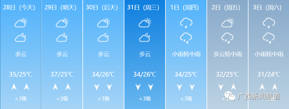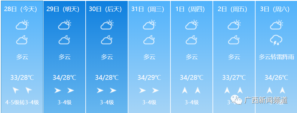 氣象專家預(yù)計(jì),本輪升溫過程,最高氣溫將出現(xiàn)在5月30日。5月31日之后,隨著副熱帶高壓的減弱以及臺(tái)風(fēng)“瑪娃”的遠(yuǎn)離,廣西最高氣溫會(huì)有所緩解。