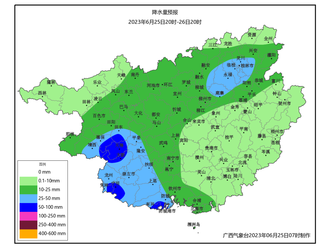 6月25日08時(shí)-6月25日20時(shí)降雨量預(yù)報(bào)圖