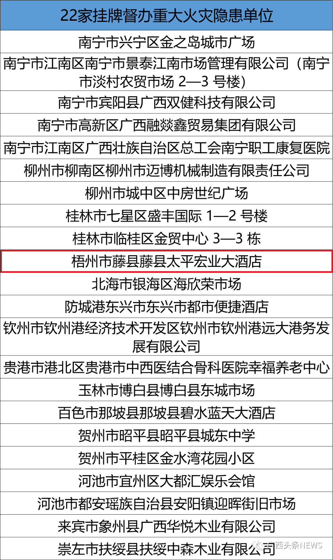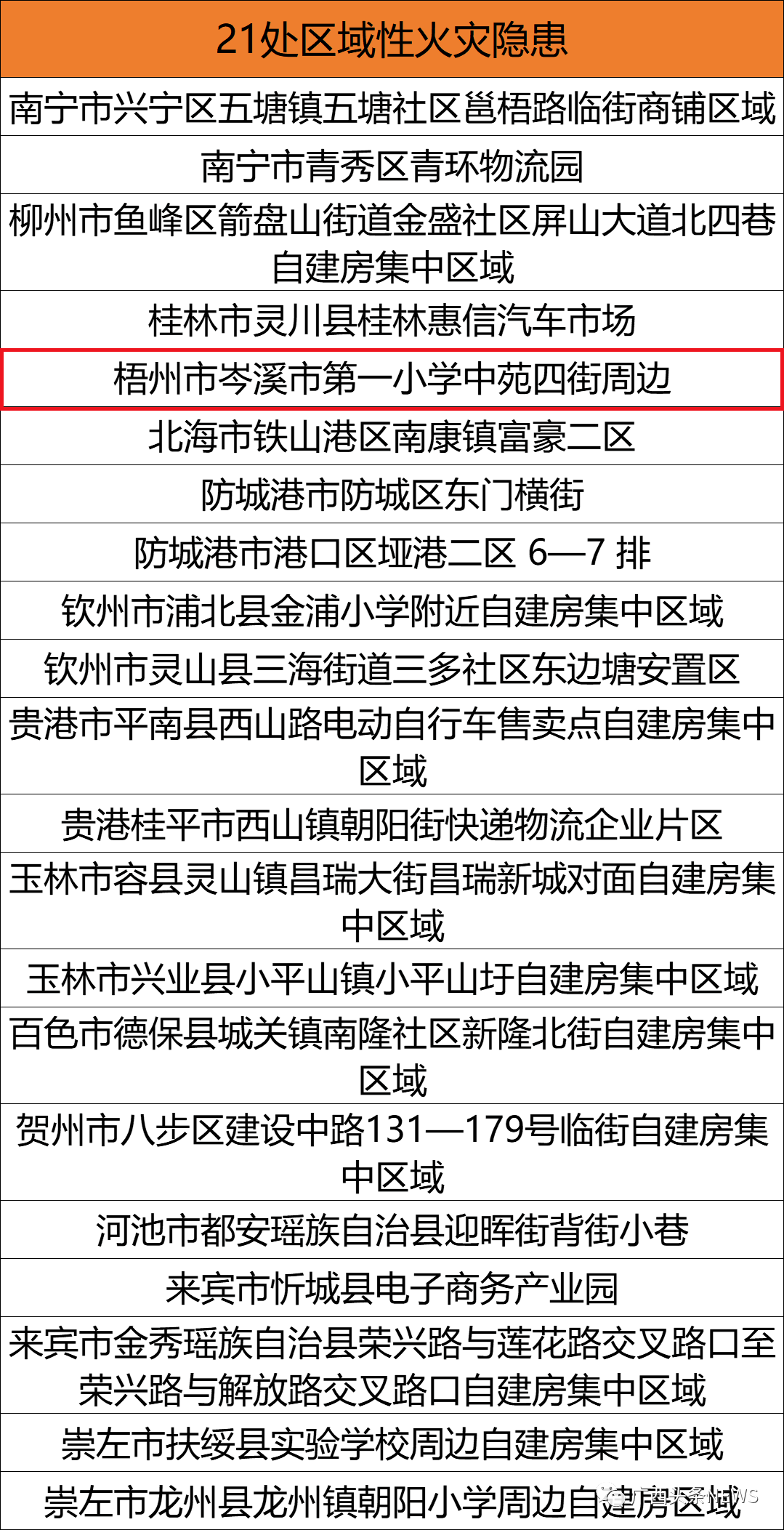 為深入貫徹落實(shí)習(xí)近平總書記關(guān)于安全生產(chǎn)重要論述,深刻汲取北京豐臺(tái)“4·18”、浙江金華“4·17”等重大火災(zāi)事故教訓(xùn),防范化解重大消防安全風(fēng)險(xiǎn),有效預(yù)防和遏制重特大火災(zāi)事故發(fā)生,根據(jù)《國務(wù)院辦公廳關(guān)于印發(fā)消防安全責(zé)任制實(shí)施辦法的通知》和《全國重大事故隱患專項(xiàng)排查整治2023行動(dòng)總體方案》要求,自治區(qū)政府決定將22家隱患突出、整改難度大的重大火災(zāi)隱患單位,和21處生產(chǎn)經(jīng)營租住類村(居)民自建房區(qū)域性火災(zāi)隱患,作為2023年度自治區(qū)掛牌督辦項(xiàng)目。