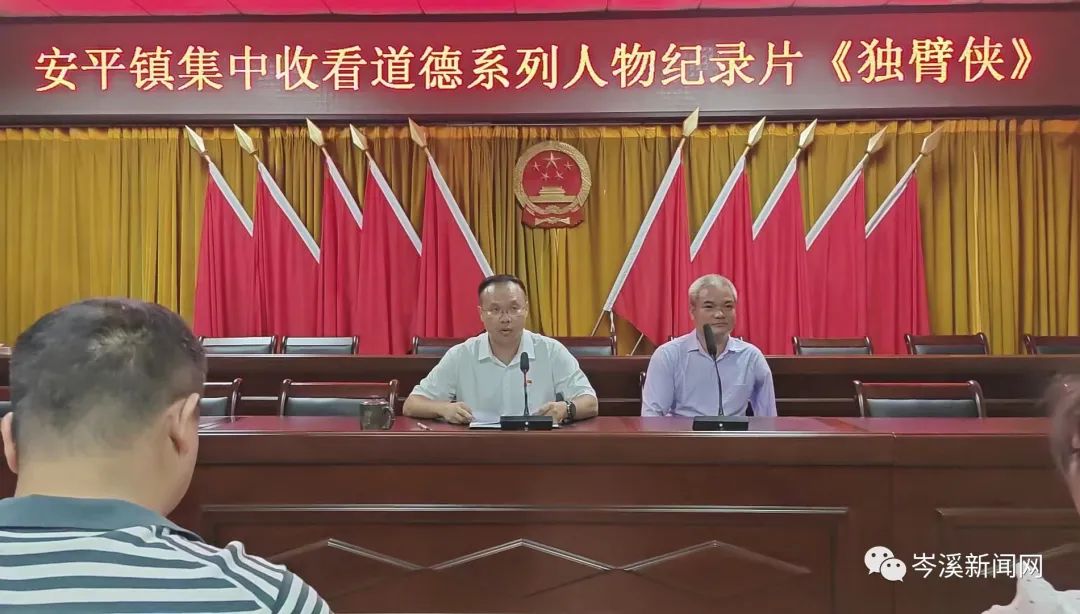 在安平鎮(zhèn)政府會(huì)議室,黨員干部們?cè)缭缇褪睾蛟陔娨暀C(jī)前等待節(jié)目播出,紀(jì)錄片主人公廖木森的到來(lái)更是燃起了在場(chǎng)所有人的激情。大家聚精會(huì)神地收看紀(jì)錄片,被廖木森樂(lè)觀不屈、堅(jiān)韌不拔的精神以及鄰里之間守望相助的溫情所感動(dòng)。