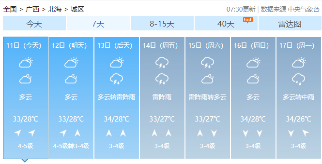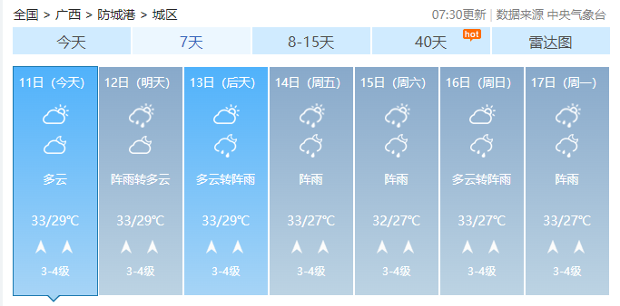 廣西氣象臺(tái)11日5時(shí)