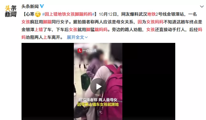 因?yàn)樯襄e(cuò)了地鐵,女兒就對自己的母親拳打腳踢,隔著屏幕都能感覺到女孩的戾氣。