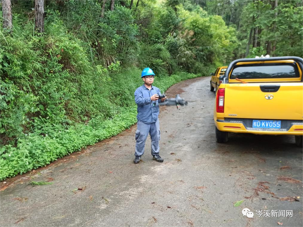 ▲岑溪供電公司搶修隊(duì)伍正在山林間巡線。